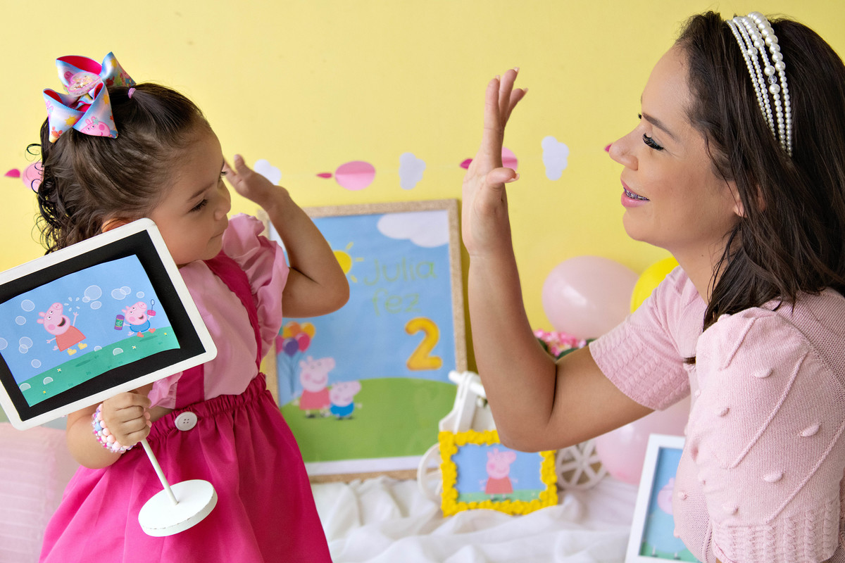 O tema escolhido pela princesa foi Peppa Pig, a porquinha mais famosa do mundo. rs